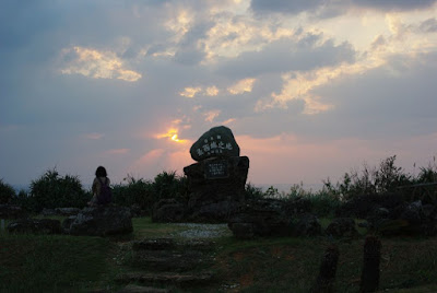 最西端の日没 18時日没ということで、17時40分から最西端の碑前で待機。水平線手前まで太陽は見えていたのだが、水平線付近の雲に邪魔されて沈む瞬間は見ることができなかった。