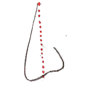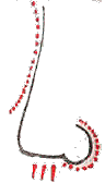 | 鼻 小鼻は開いてさがる。正面から見ると鼻筋にゆがみがある。 | |