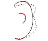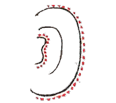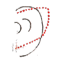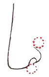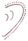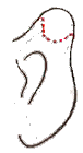 耳 上部は広く角がある。下部はくぼんで中間に窪みがある。 |