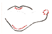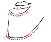 口 小さくて、曲がる。下唇に縦の小皺がある。 顎 小さく短く後ろに引ける。 |