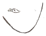 口 壷口で何かもの言いたげである。 唇 薄く、上唇に細い縦皺がある。 顎 とがって長く、少し反って出っ張る。 |