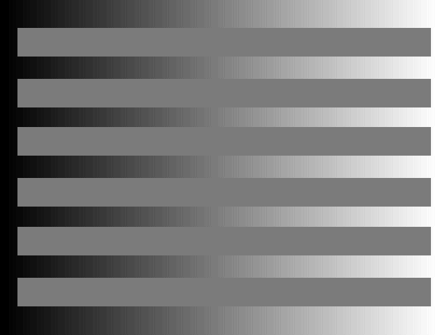 灰色のバーが同じ明るさになるようにモニターを調整してください