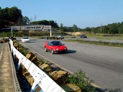 この3枚の画像はしものさんに撮ってもらいました。 ホームストレートから1コーナーへのアプローチ。 ちょうどブレーキングを始めたところくらい。 |
