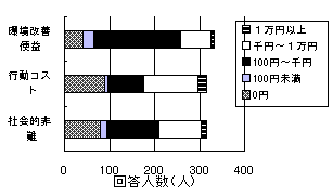 アンケートは1995年の12月に実施し、京都市南部版の電話帳より無作為抽出した564人に対して郵送でアンケートを行い、362人 (64%)の回答を得た。利得関数を求めるにあたっては、上記3種類の要素について不確定評価技法(CVM: contingent valuation methods)を用いて尋ねた。今回は、裸売りの野菜を選択することのコストを1ヶ月あたりで費用換算して尋ねた。