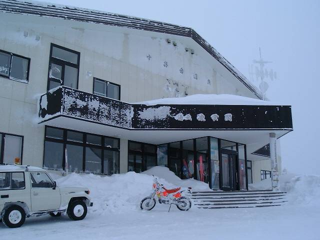 つづら折の道路を上がった場所に一軒だけ建っています。真冬なのにバイクできているツワモノがいるようです。 |