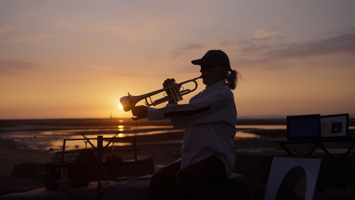 ・(23)夕日とトランペット 台湾の湿地にて