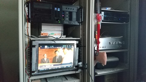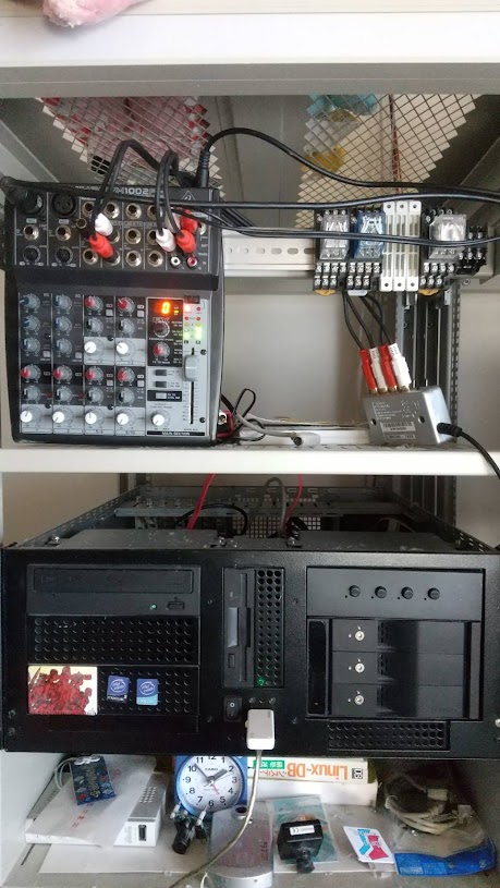 ・ラックには朝鮮カラオケ大会で使用しているミキサー、