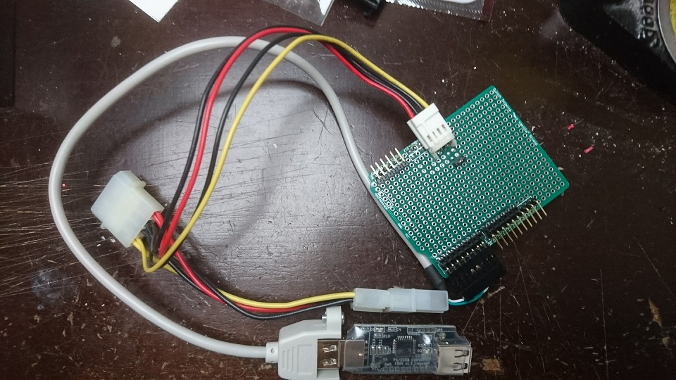 この汎用のハーネスを使用して、ArduinoからUSBへ電源を送るようにしている。
