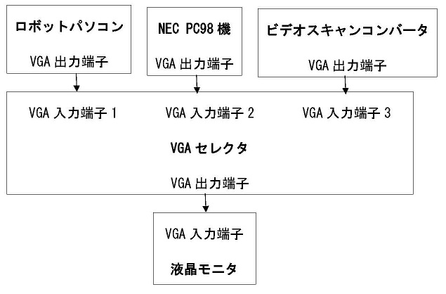 ・通常なら、ロボットパソコンのVGA端子と液晶モニターを直接繋ぐ処である。