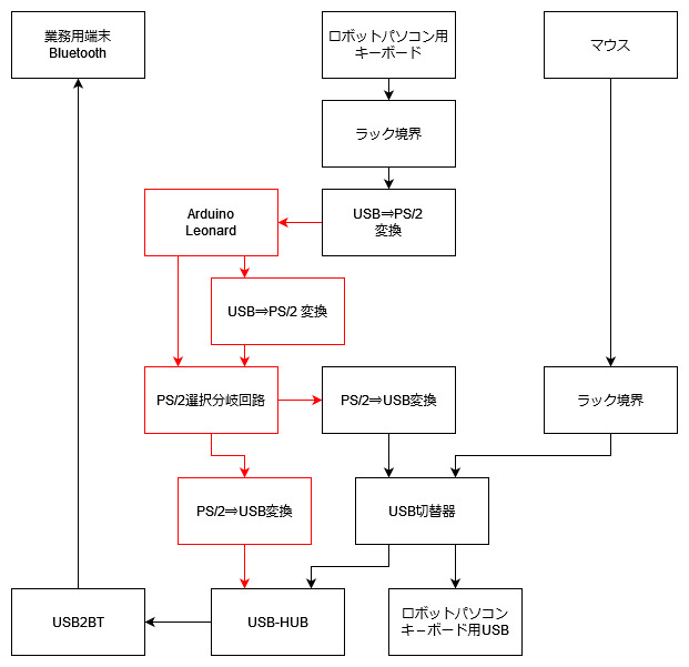 ・これらを組み合わせる事で有線のマウスをロボットパソコンと共用しながら