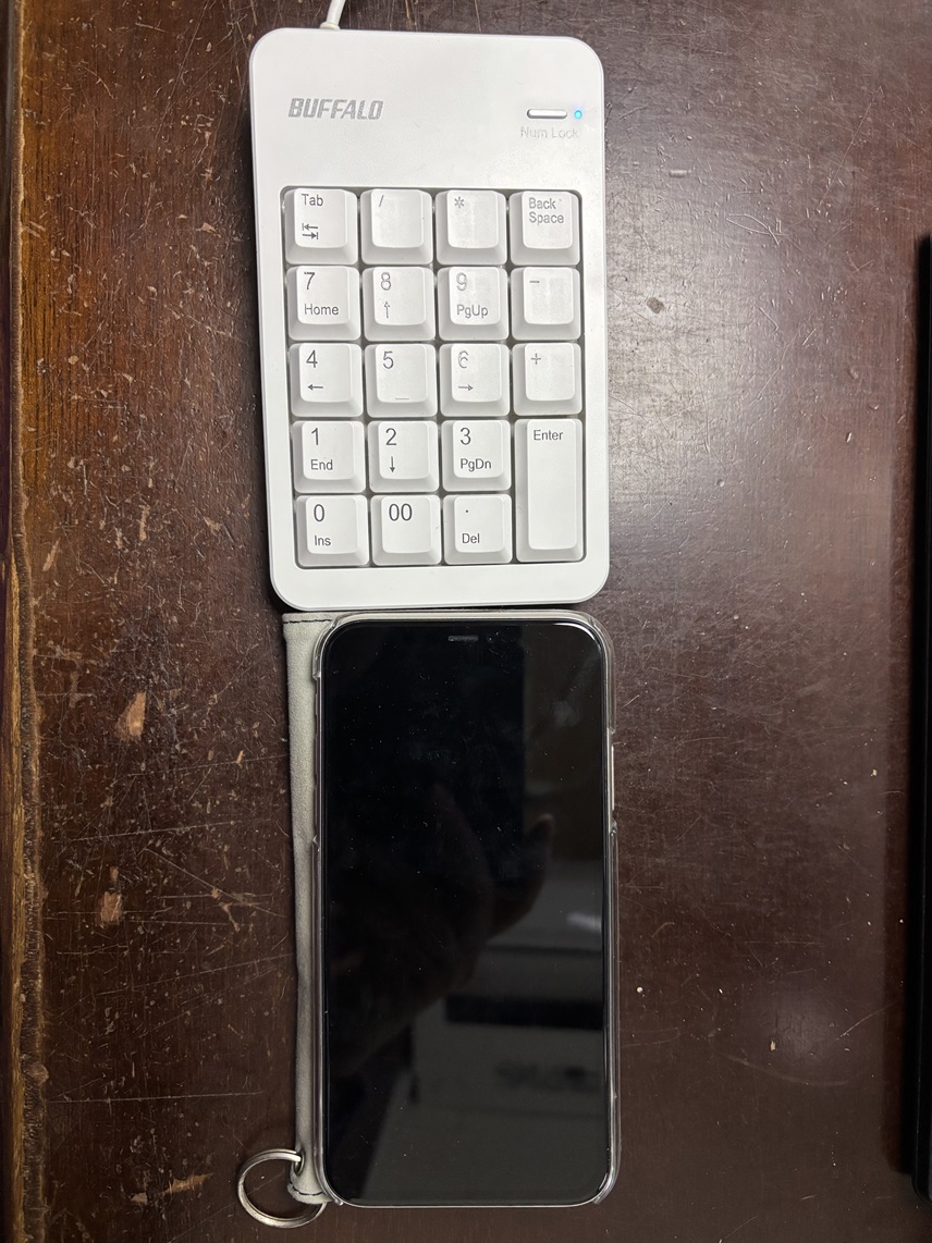 スマホホルダにテンキーを嵌めている。