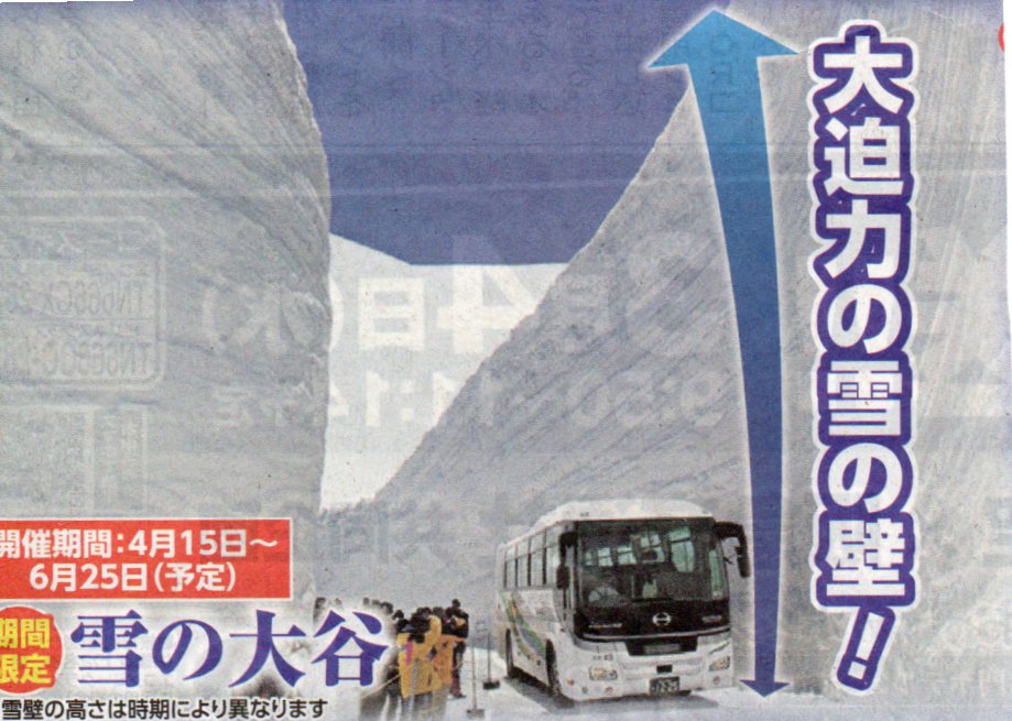 | 期日:4/23.27.5/1.17.29.6/7.14.19 集合:名駅西口8:20 宿泊:富山地鉄ホテル 行程:①立山++ケーブルカー・高原バス・雪の大谷鑑賞ー富山/泊 ②ますのすしミュージアムー砺波チューリップフェア鑑賞・ 5/17~庄川峡遊覧船ー高山市内散策ー名駅西口18:000 |