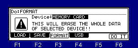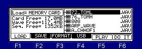 ![]() ![]() Please select a device in the "Load" field. ![]() Please move cursor to a folder or a file to read, and press the F6(DO IT) key. ![]() ![]() If the [WINDOW] key is pressed on the screen of LOAD, a "Option" window will open. When setting to "ON" and loading of a sample is performed, a "Assign to Pad" window will open. ![]() ![]() Please move cursor to the pad number which wants to assign the sample to load, and press the F5(YES) key. When the F4 (NO) key is pressed, it does not assign a pad. And a window is closed. Notes: It is not assigned to a pad even if it will press F5 (YES) key, if the program is not made. ![]() ![]() When the sample is chosen in the file field, the audition of the sample chosen if F5(PLAY) key or arbitrary pads are pressing can be performed. Note An audition by the following method can be performed in OS1 and OS2. Even if it chooses a sample by a DATA wheel, pressing a arbitrary pad, audition is Possible. Furthermore, when the [PLAY] or [PLAY START] key is pressed, the sample is played back to end. ![]() ![]() If cursor is in the "Load" field on the screen of loading and F5 (A. LOAD) key will be pressed, the window of "Auto Load" will open. ![]() ![]() Please select a device. Next, please choose the folder which moves cursor to the right and carries out an auto load. ![]() ![]() Arbitrary folders can be chosen. ![]() ![]() The screen of a format will be displayed if F3 (FORMAT) key is pressed on the screen of a save or load. ![]() ![]() A format will be performed, if the device to format is chosen and F6 (DO IT) key is pressed. |