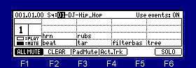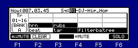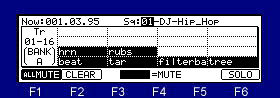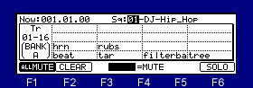 TRACK MUTE screen of OS2XL (PAD MUTE is