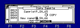 ![]() ![]() ![]() F3[Z.IN]キーで波形のズームイン F2[Z.OUT]キーで波形のズームアウト BAR >又は[SHIFT]+ ![]() ![]() ![]() ![]() Q1[AFTER]キーを押しながらスライダーでスタート・ポイントの変更ができます。(カーソルをStフィールドに移動してジョグで変更も可) Q2[AFTER]キーを押しながらスライダーでエンド・ポイントの変更ができます。(カーソルをEndフィールドに移動してジョグで変更も可) ![]() サンプルフィールドにカーソルがあるとき[WINDOW]キーを押すと"Sample list"のウィンドウが表示されます。 表示内容は、サンプル名、サンプルのTune、(ST)はステレオサンプル、LOOPはループがONに設定されているサンプルを意味します。 ![]() ![]() ![]() ![]() ![]() ![]() ![]() ![]() ![]() ![]() F6[EDIT]==>DISCARD EXTRACT DELETE SILENCE NORMALIZE REVERES TIME STRETC PITCH SHIFT STEREO L=> MONO STEREO R=> MONO STEREO L+R=> MONO STEREO L-R=> MONO ![]() |